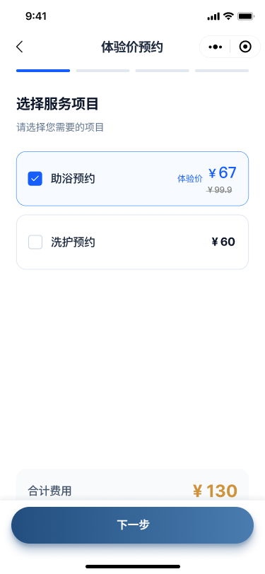 2、养老服务:上门助浴、洗护,线上提交表单,线下安排上门人员