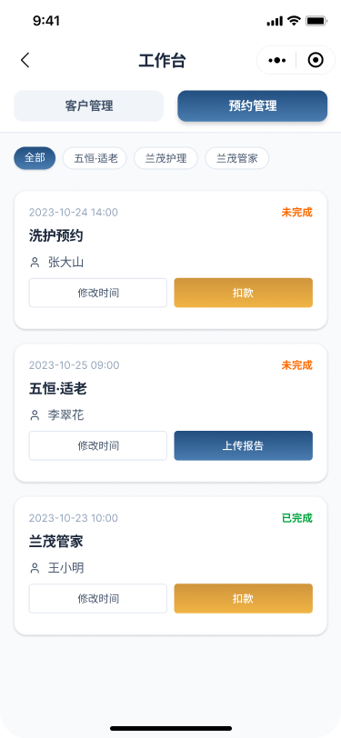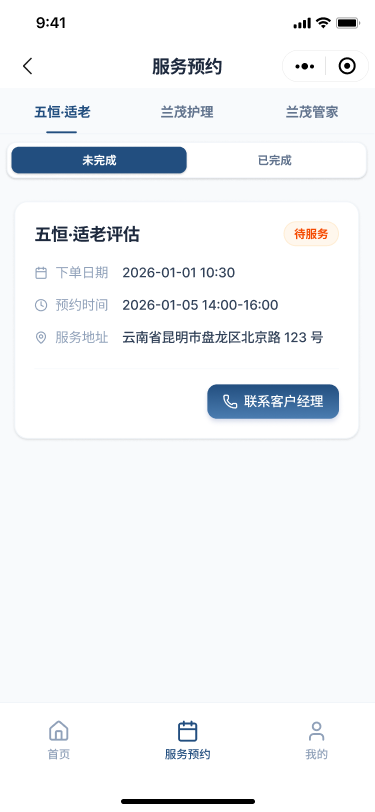3、养老管家:周期性上门服务,线上提交订单,线下安排上门人员